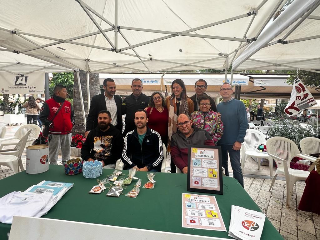 La Asociación Salud Mental Águilas, se ha sumado a los actos celebrados en Águilas por el Día Internacional de las personas con discapacidad organizado por el Ayuntamiento de Águilas. La Concejalía de Política Social, con la colaboración de la Defensora de las Personas con Discapacidad del Ayuntamiento de Águilas, puso en marcha un gran número de actividades con motivo del Día Internacional de las Personas con Discapacidad que se conmemoró el pasado domingo 3 de diciembre. La programación culminó el pasado lunes 4 de diciembre, con actividad física adaptada y la participación de la residencia de Pensionistas Ferroviarios, Fundown, C.O. Urci y las aulas abiertas de los colegios Las Lomas, Joaquín Tendero y El Rubial, una idea de Asociación Salud Mental Águilas y llevada a cabo por el grado medio de TSEAS del IES Europa. “Las actividades de la Semana de las Personas con Discapacidad no han podido tener mejor final”, comentó la alcaldesa Mari Carmen Moreno, que visitó el Pabellón Polideportivo en compañía de la edil Elena Casado. Como colofón a los actos, el pasado viernes 1 de diciembre se celebró una feria sociosanitaria con la participación de distintas asociaciones locales. En este acto se procedió a la lectura del manifiesto conmemorativo del Día Internacional de las personas con discapacidad. La feria acabó con un animadísimo taller de baile a cargo de la aguileña Goyi Vera. El programa de actividades dio comienzo el anterior lunes, en el Centro Comercial Águilas Plaza, con un taller de zumba, organizado por Águilas Down. El martes hubo una visita cultural y actividad física, organizada por la Residencia de Ferroviarios y ADIA. El miércoles hicieron actividades deportivas y una gimkana, organizada por el Centro Ocupacional Urci. Y el jueves participaron en la clausura de la Semana del Mayor en la Residencia de Pensionistas Ferroviarios. Además, la Asociación Lactancia Feliz dirigió un taller de manualidades. El viernes, la Plaza de España acogió una nueva edición de la Feria de Asociaciones Sociosanitarias, en la que se dieron cita 11 asociaciones, que dieron a conocer su actividad y vendieron manualidades realizadas por los usuarios. Las actividades continuaron el domingo, se realizó la Caminata Dorsal Solidario, organizada por el Centro Ocupacional Urci. Desde la Asociación Salud Mental Águilas, agradecemos al Ayuntamiento de Águilas y su Concejalía de Política Social que haya contado con nosotros un año más para participar en estos actos.
